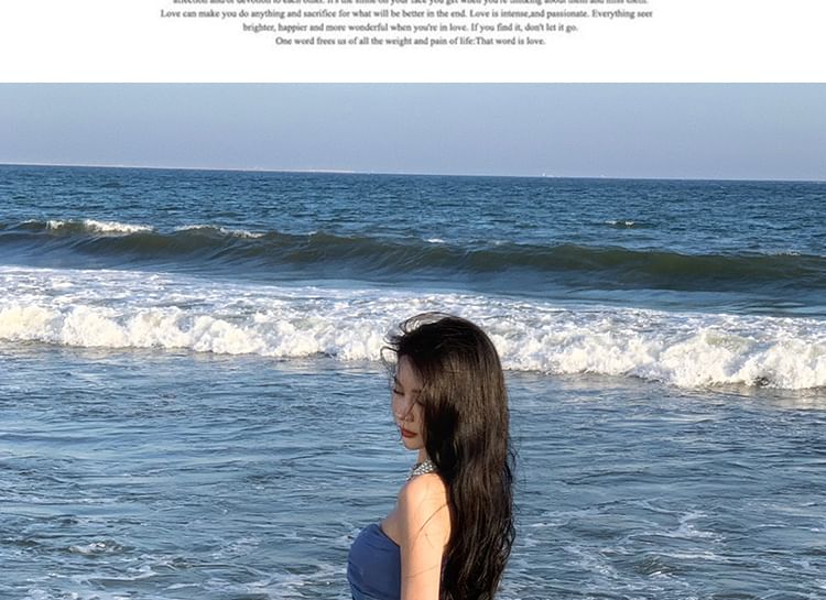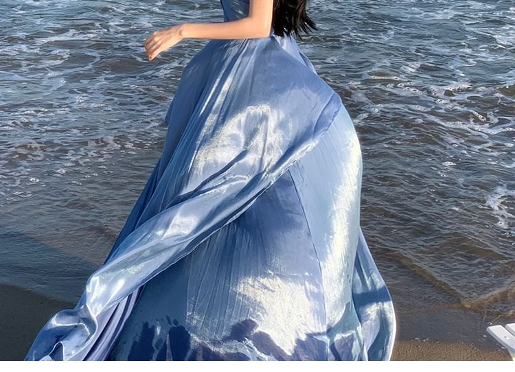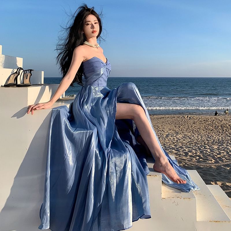Strapless Sweetheart Neckline Plain Asymmetrical Layered Slit Maxi A