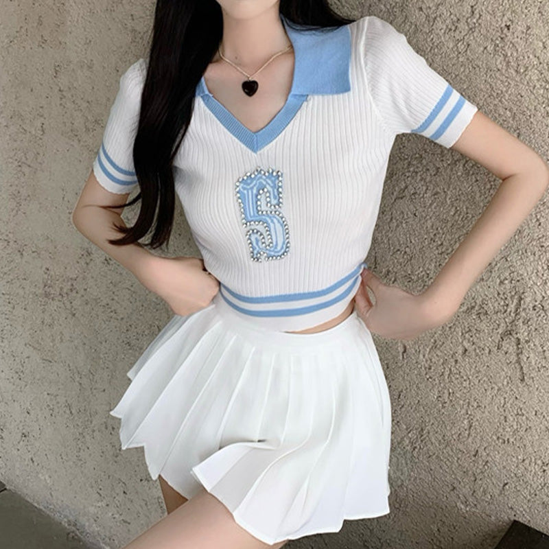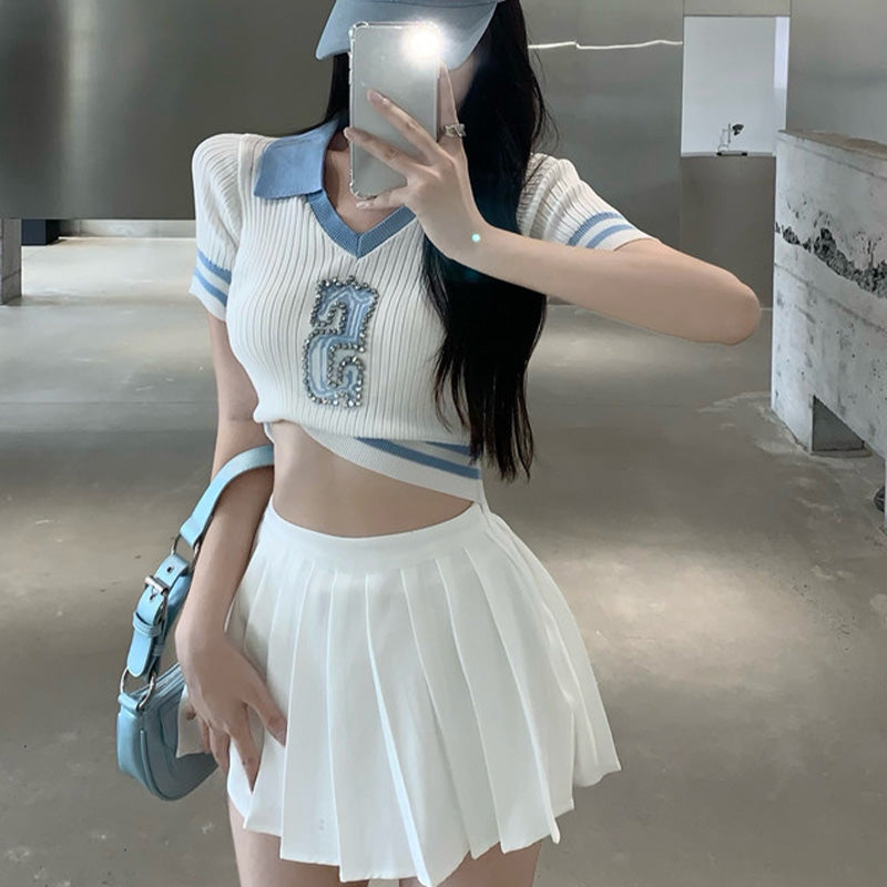 Skirt Waist Print Sweet Pleated High T-Shirt