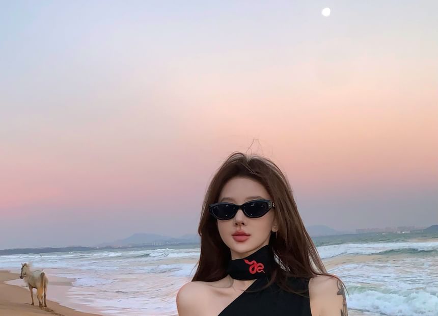 Tank Top One-Shoulder Snake Slim Print Fit Halter