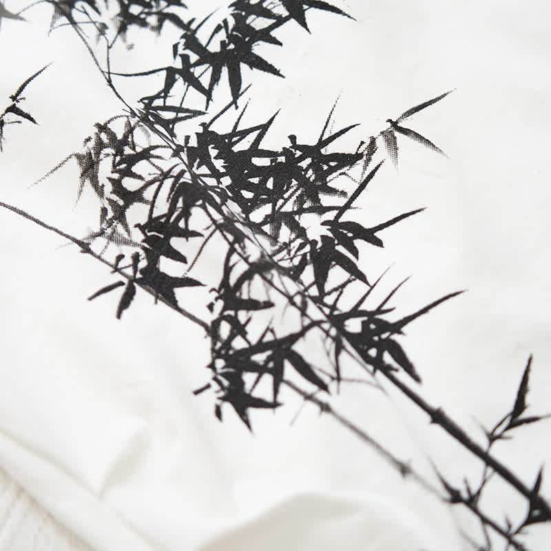 Tassels Vintage Waist Print T-Shirt High Bamboo Skirt Pleated