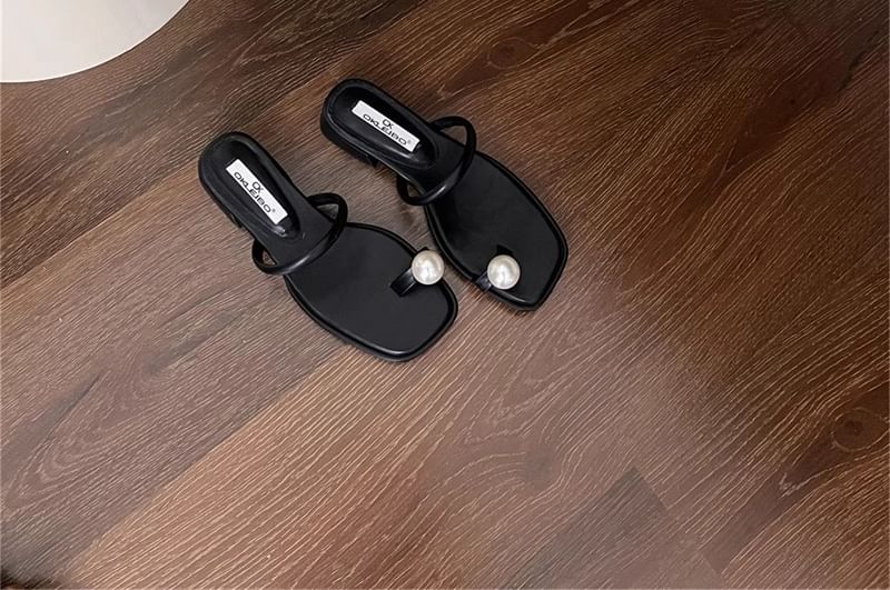 Toe Loop Faux Pearl Chunky Heel Slide Sandals