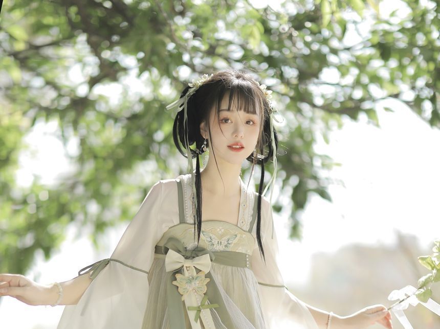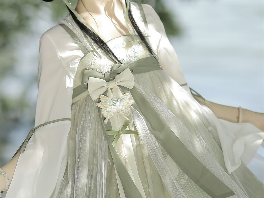 Traditional Chinese Wide-Sleeve Top / Sleeveless Mesh Dress / Set
