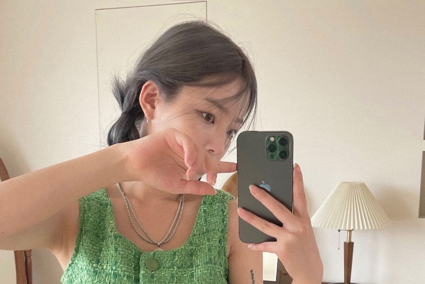 U-Neck Button-Up Plain Crop Vest