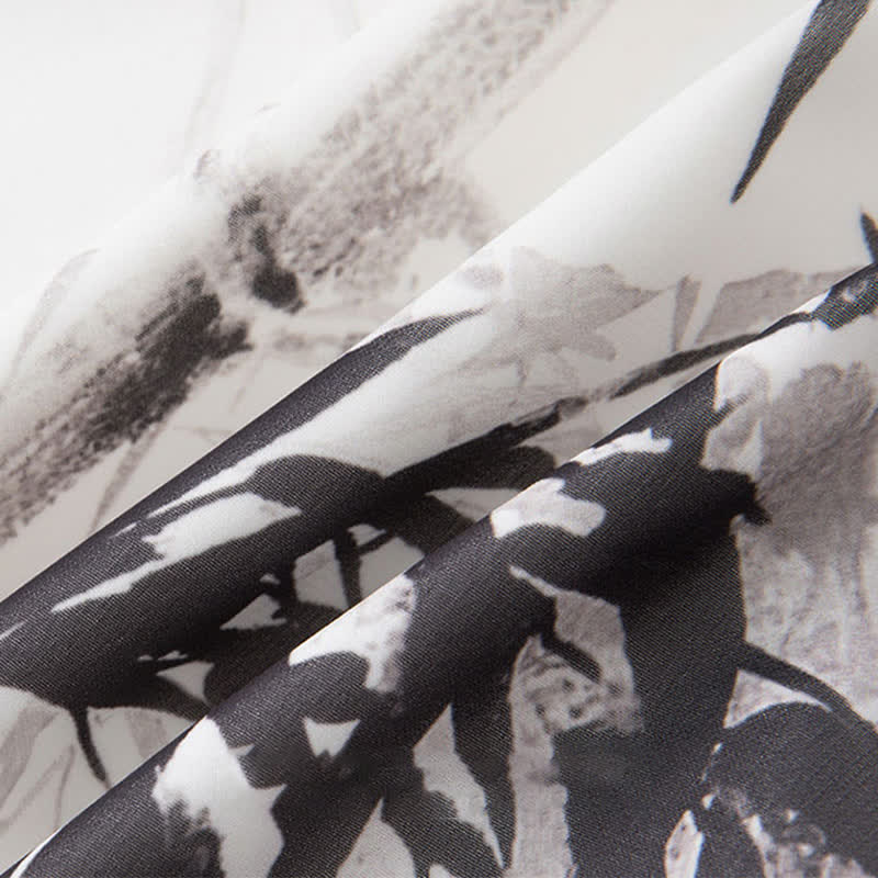 Vintage Bamboo Print Buckle Irregular Cheongsam Dress