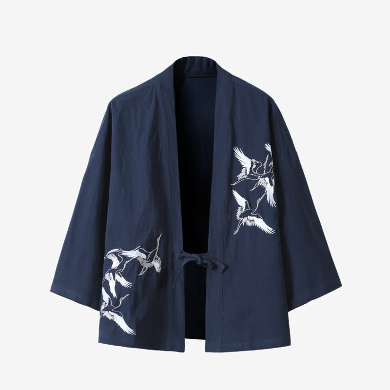 Elevate your style with our Vintage Crane Embroidery Outerwear. This elegant piece features stunning crane embroidery, adding a touch of sophistication to your wardrobe. Stay warm and stand out with this timeless outerwear that showcases your unique sense of fashion.
