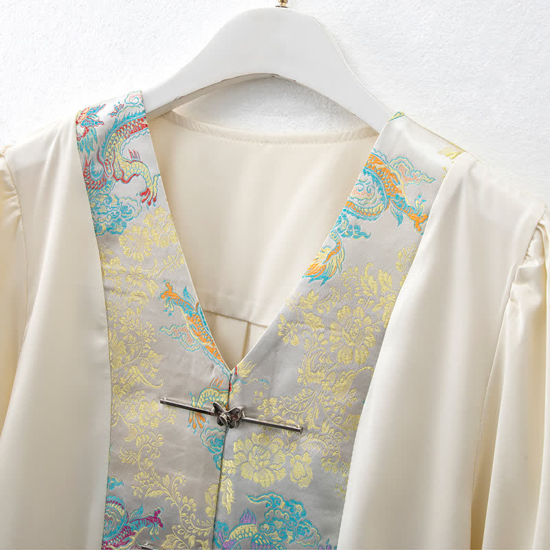 Vintage Dragon Buckle Long Sleeve V-neck Shirt