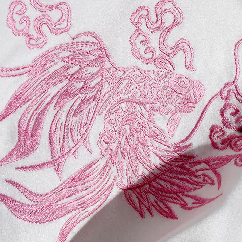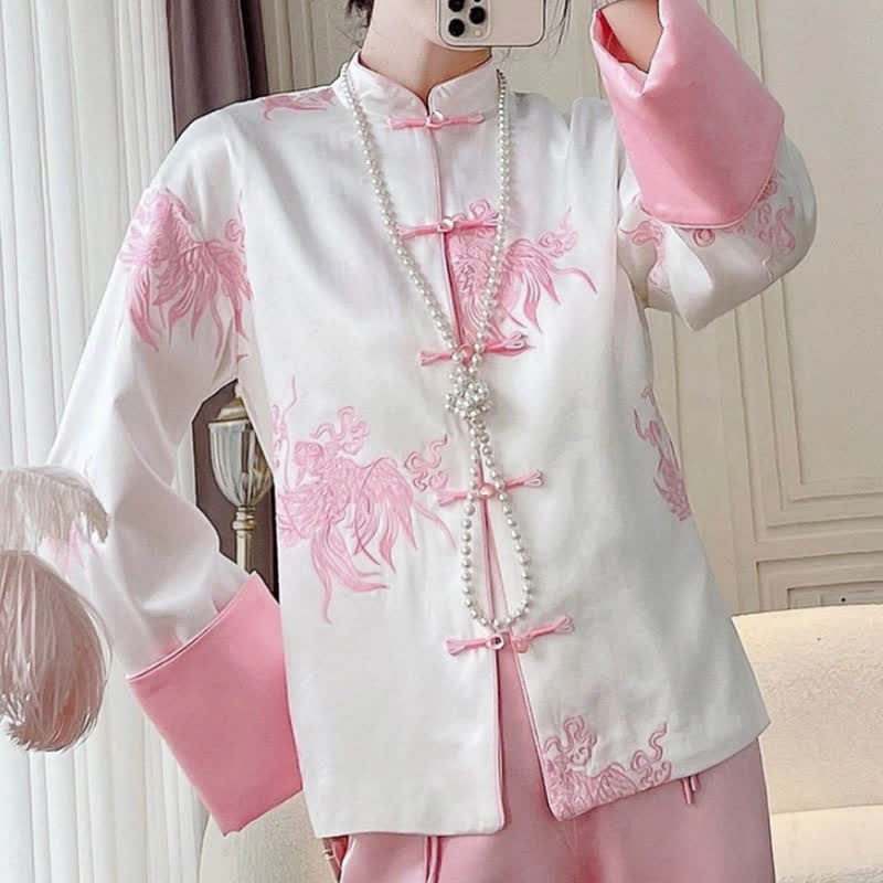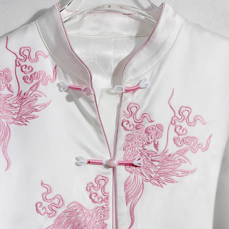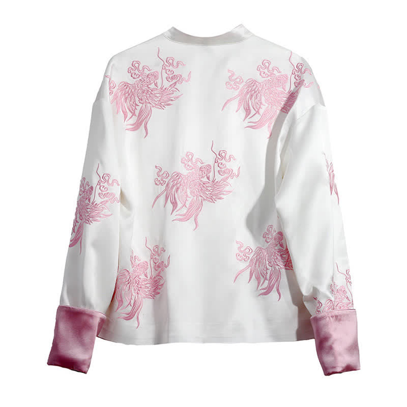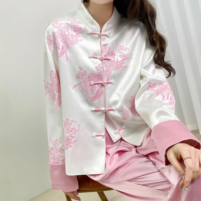 Vintage Floral Embroidery Buckle Long Sleeve Satin Shirt