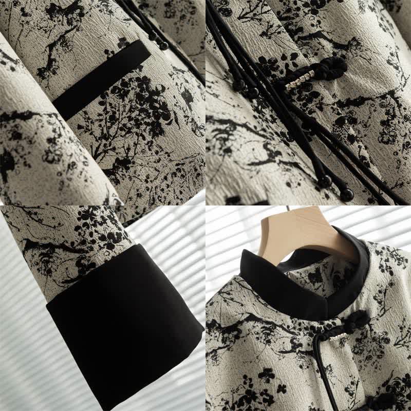 Vintage Floral Print Buckle Long Sleeve Shirt Vest