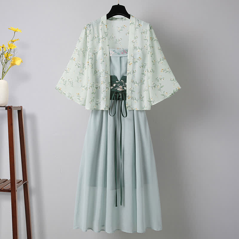 Vintage Hanfu Floral Cardigan Embroidery Slip Dress