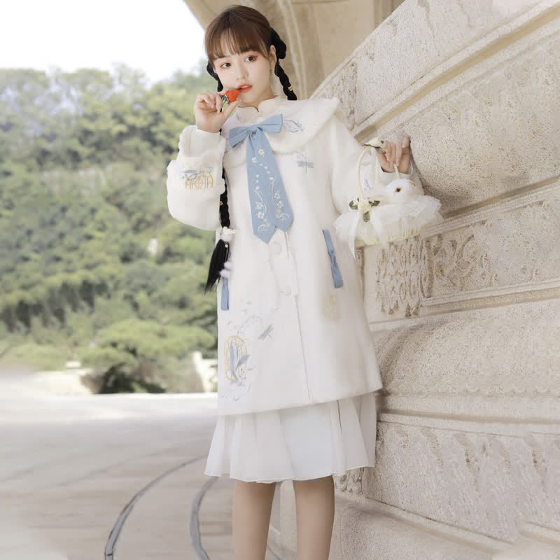 Vintage Jacquard Cheongsam Doll Collar Tassel Plush Coat