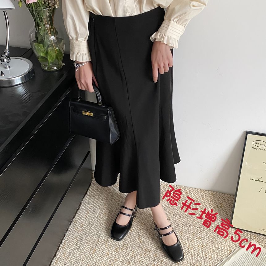 Wedge-Heel Dual-Strap Mary Jane Flats