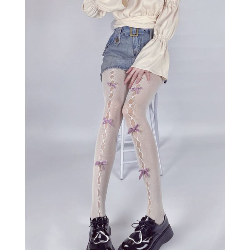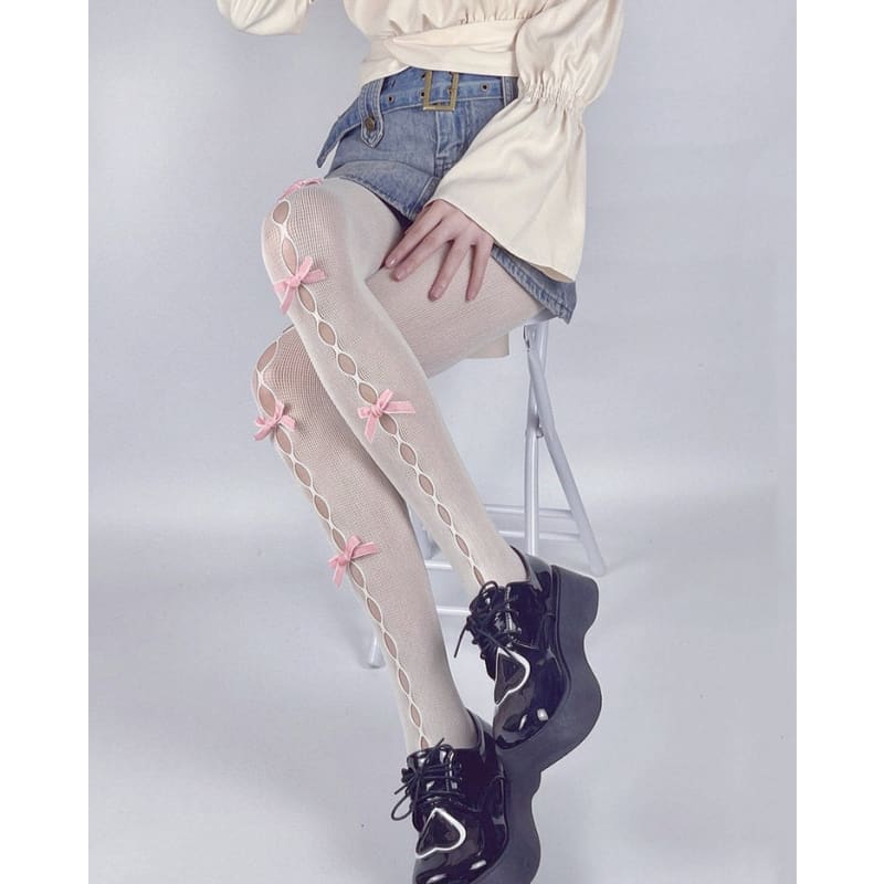 Get ready to add a touch of kawaii to your outfit with these White Pink Bow Nylon Tights. Made with high-quality nylon, these tights feature cute pink bows that will elevate your style. Perfect for any occasion, these tights are the perfect combination of comfort and cuteness.
