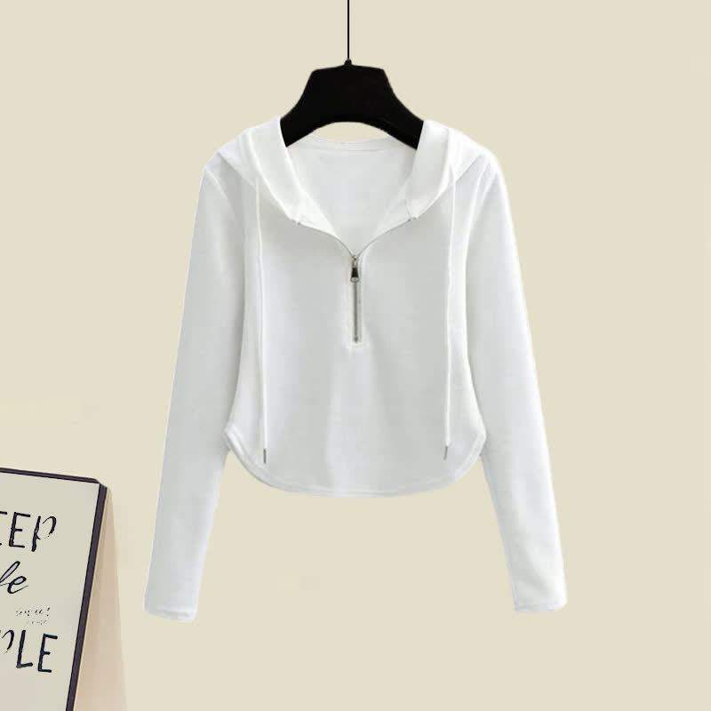 Pure Color Zipper Hoodie Black Pants Set